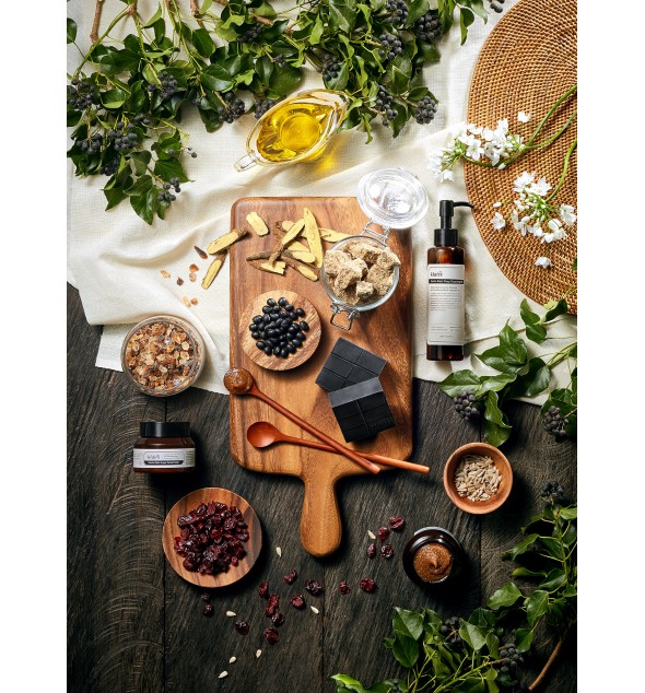 Black bean oil helps regulate oil production, supports skin elasticity and provides a soothing effect.